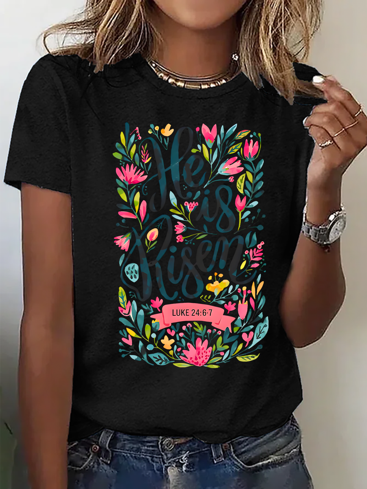 He Is Risen Easter Shirt, Floral Easter Tshirt, Jesus Easter Cotton T-Shirt