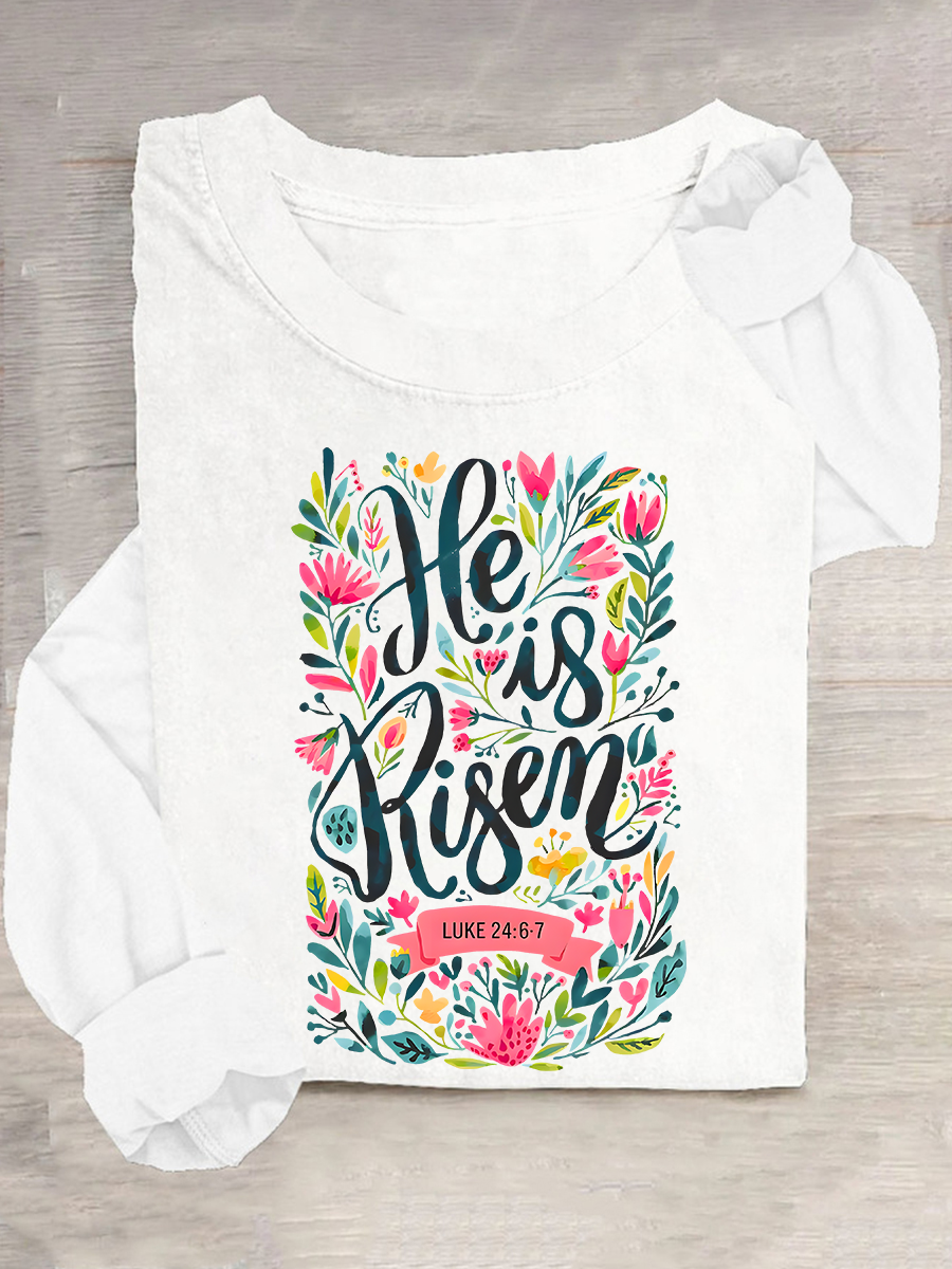 He Is Risen Easter Shirt, Floral Easter Tshirt, Jesus Easter Casual Long Sleeve Shirt