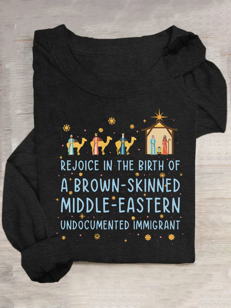Rejoice In The Birth Of A Brown-Skinned Middle-Eastern Undocumented Immigrant Book Lovers Casual Long Sleeve Shirt