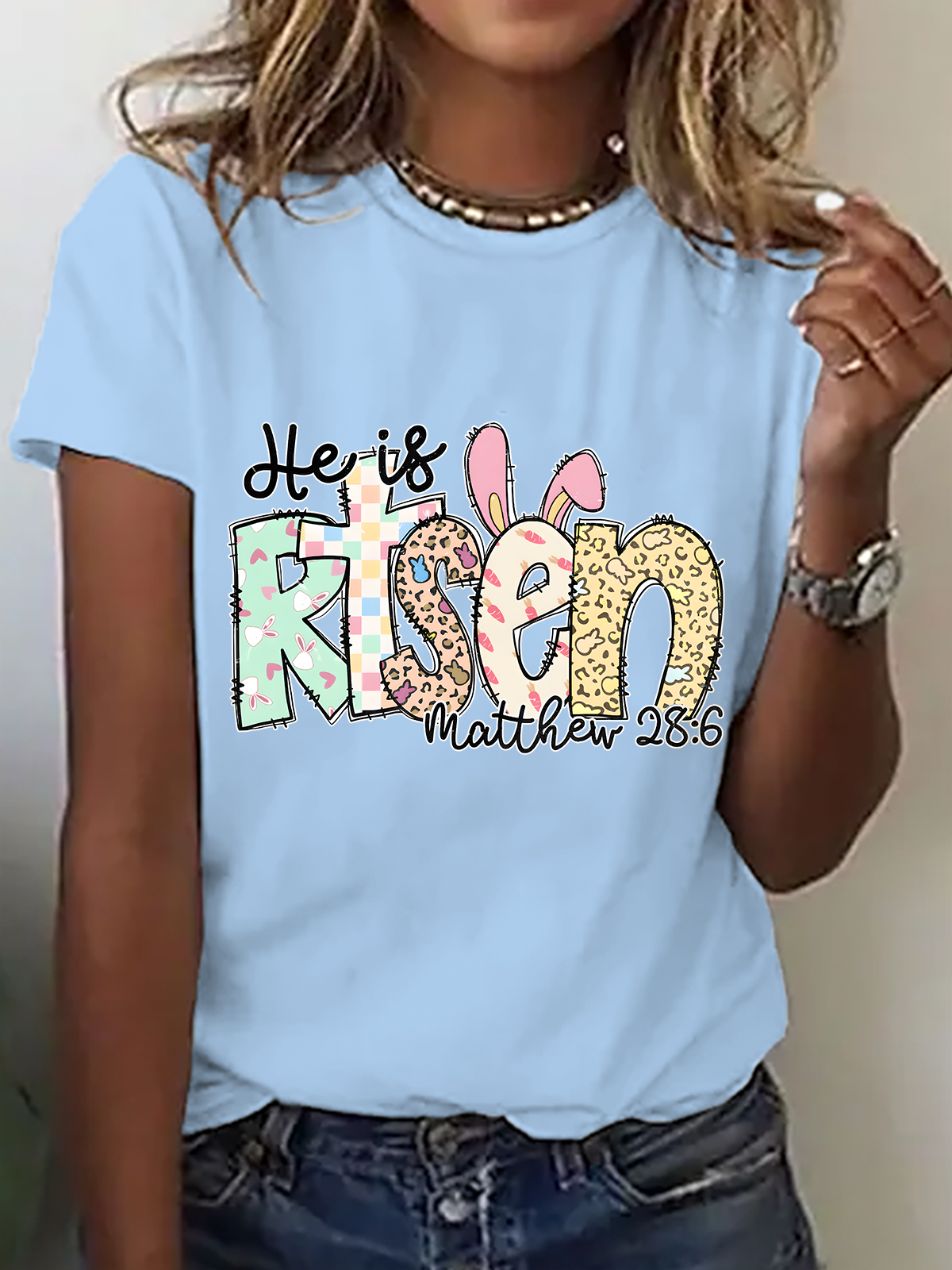 He Is Risen Easter Graphic Short Sleeve V-Neck Loose Tee