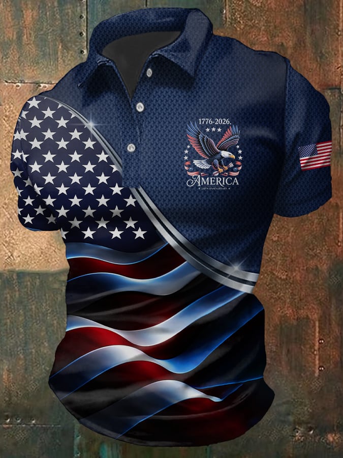 Men's America 250th Anniversary Print Casual Polo Shirt