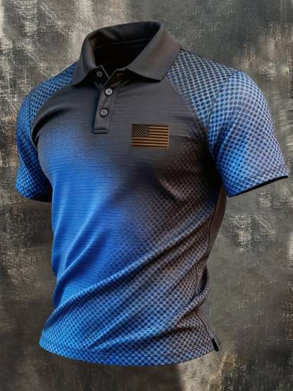 Men's Retro Patriotic Color-Block Short-Sleeve Polo Shirt