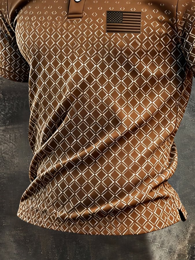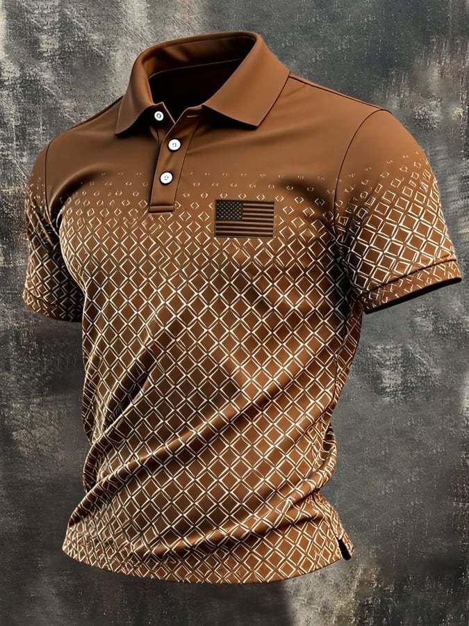 Men's Retro Patriotic Color-Block Short-Sleeve Polo Shirt – lolonb