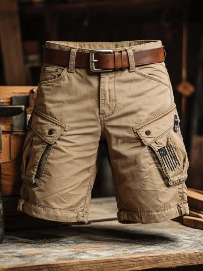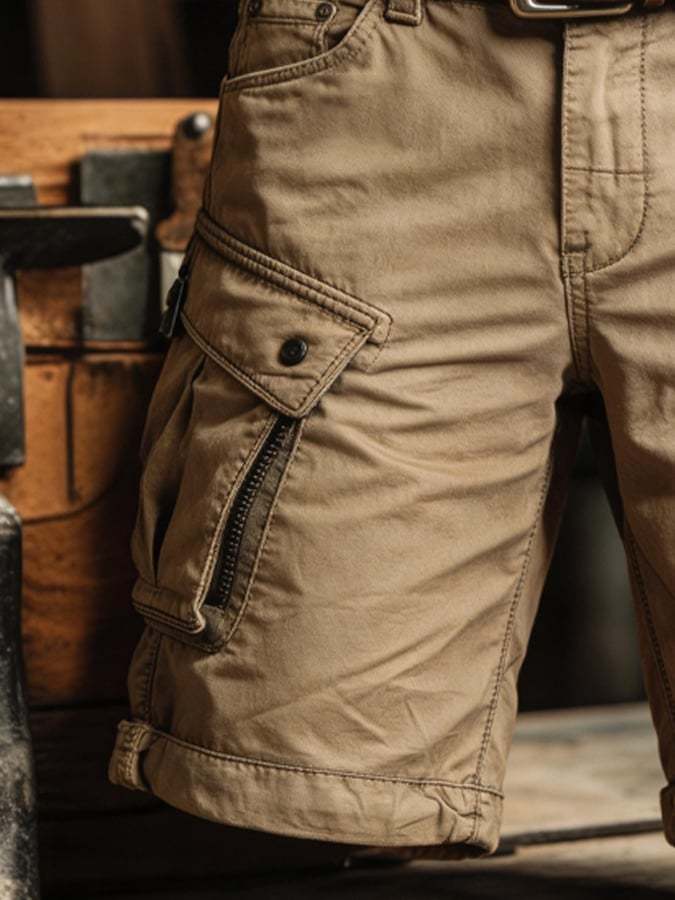 Men's Retro Outdoor Washed & Distressed Multi-Pocket Functional Cargo Shorts – lolonb