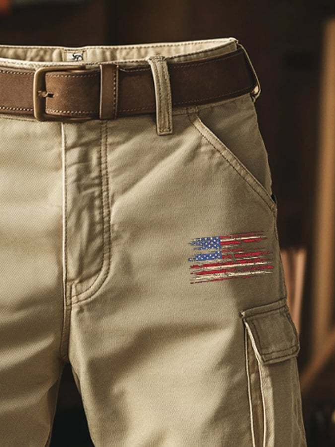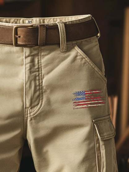 Men's Retro Outdoor Washed & Distressed Multi-Pocket Functional Cargo Shorts