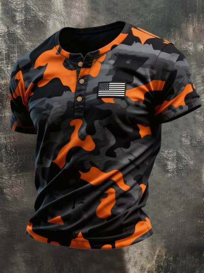 Men's Retro Patriot Camouflage Patchwork T-shirt