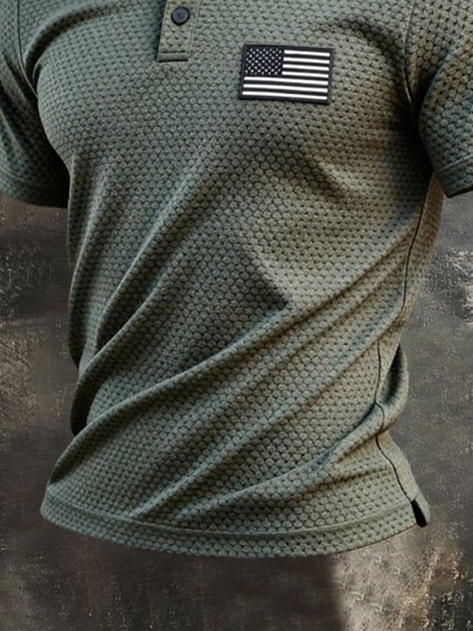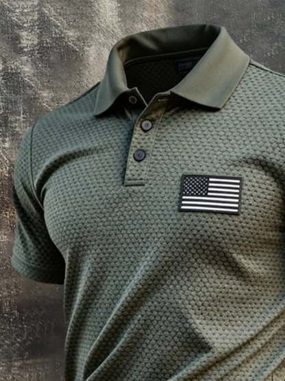 Men's Retro "Patriot" Quick-Dry Textured Fabric Polo Shirt – lolonb