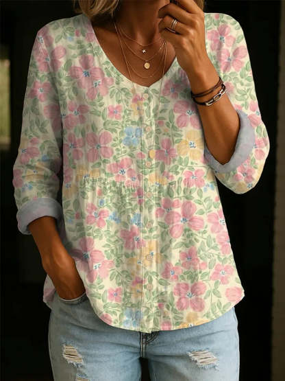 Women's Floral Pattern Art Print Casual Cotton Shirt – lolonb
