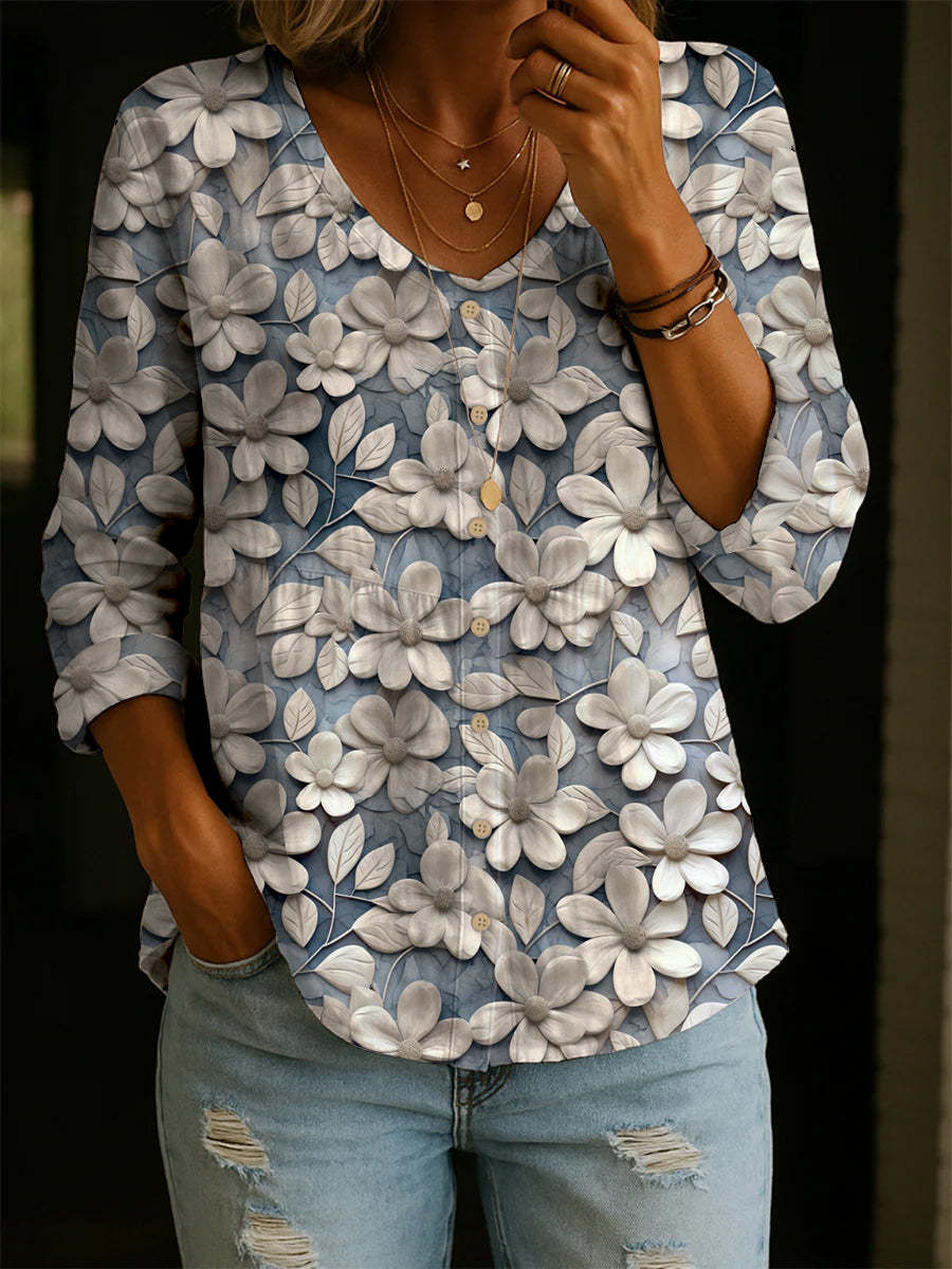 Women's Flower Pattern Art Print Casual Cotton Shirt – lolonb