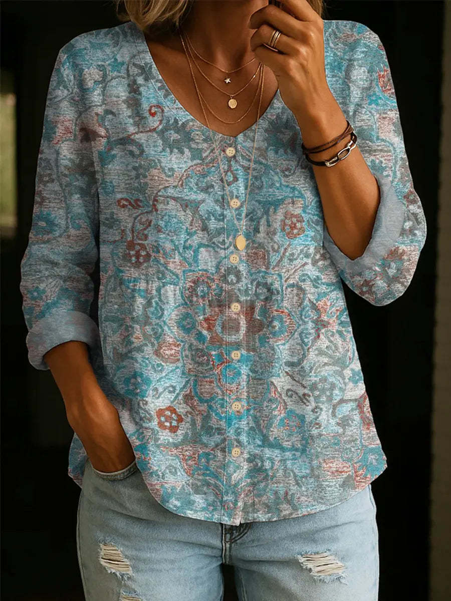 Women's Vintage Floral Pattern Art Print Casual Cotton Shirt