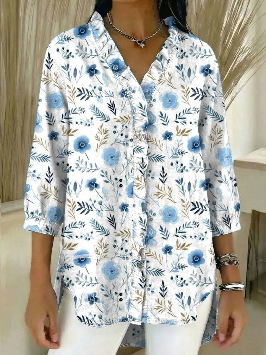 Women's Vintage Flowers Print Casual Ruffled Shirt – lolonb