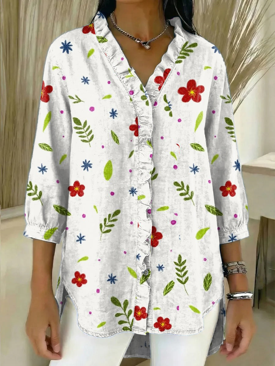 Women's Vintage Flowers Print Casual Ruffled Shirt – lolonb