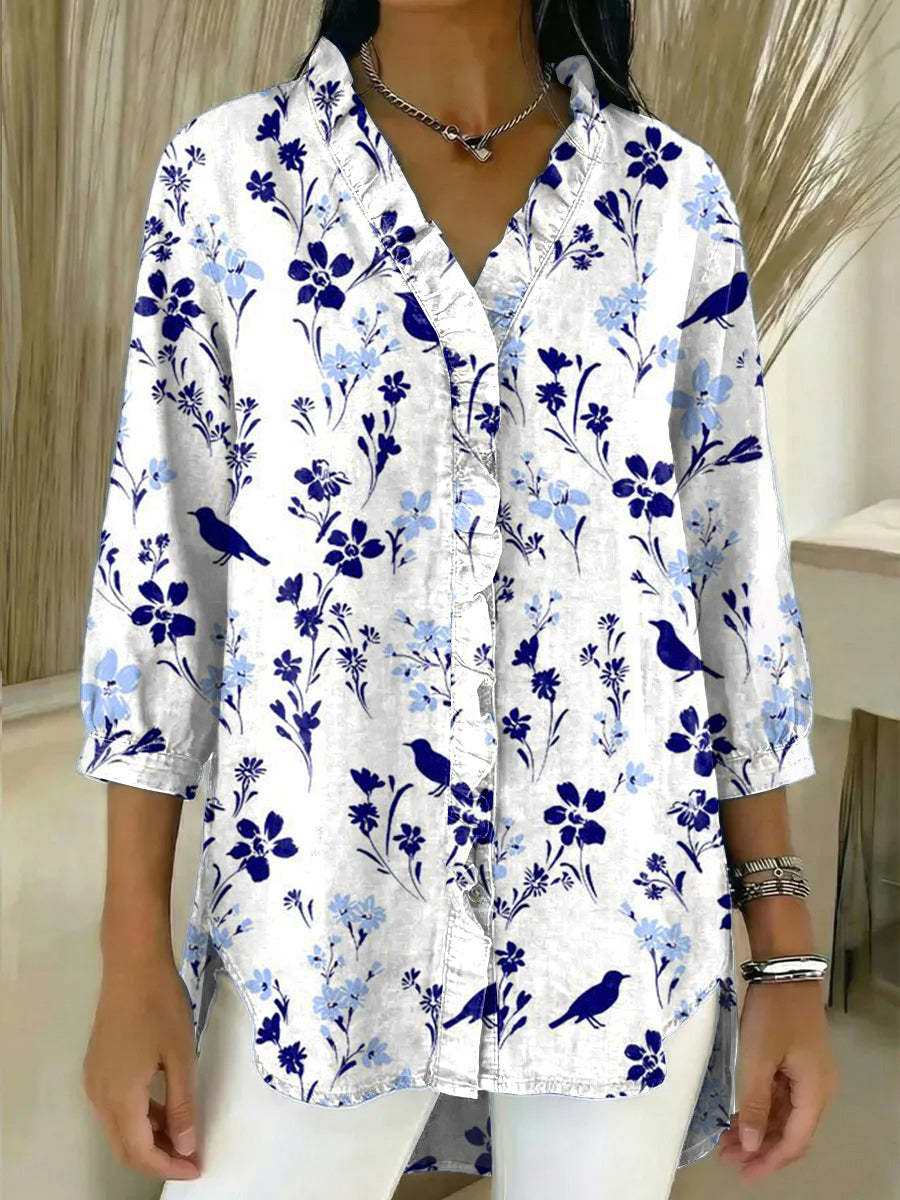 Women's Vintage Flowers Print Casual Ruffled Shirt – lolonb