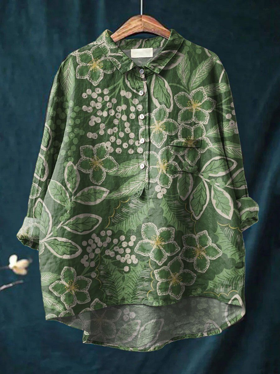 Women's Vintage Flower Print Casual Cotton And Linen Shirt – lolonb