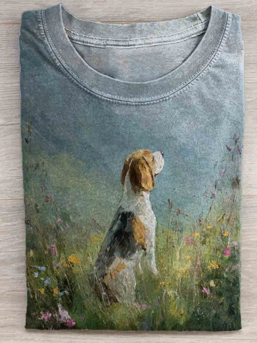 A Beagle In A Spring Flower Garden Cute Dog Art Print T-shirt