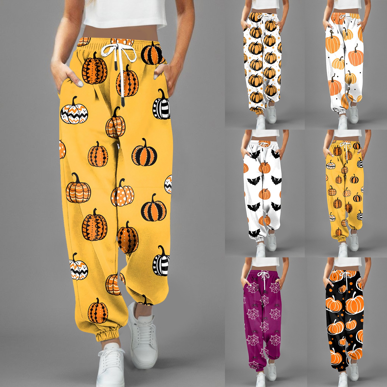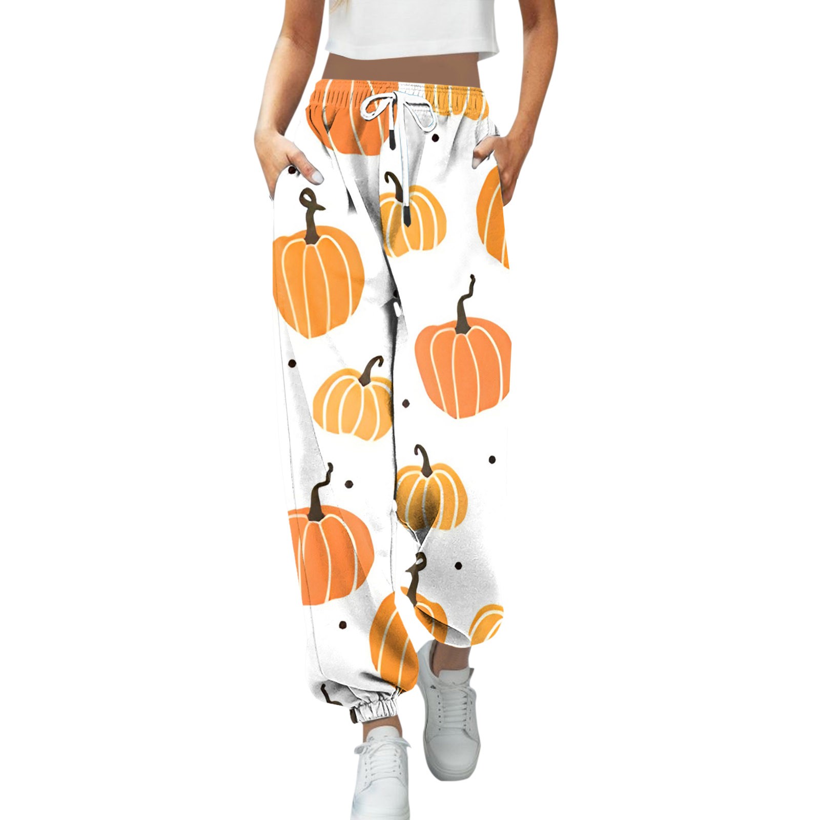 Women Halloween Streetwear Pumpkin Wide Leg Pants