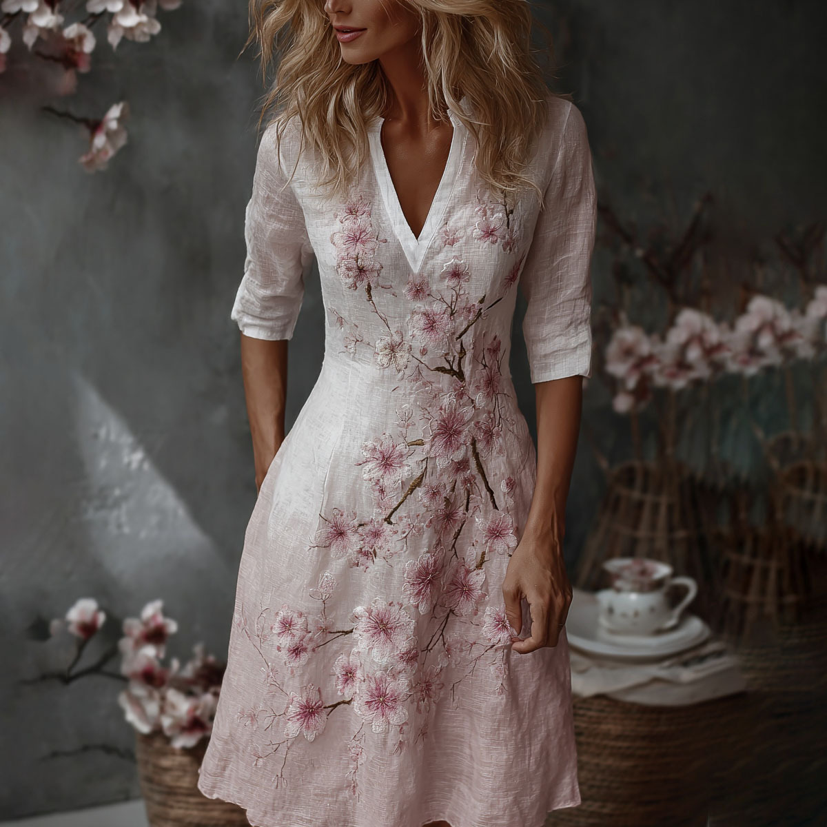 Women's Exquisite Embroidered Print Art Casual Linen Short Sleeved Dress – lolonb