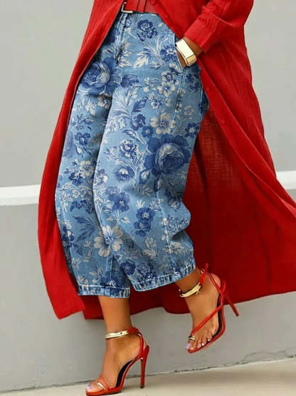 Women's Retro Floral Pattern Art Print Casual Jeans – lolonb
