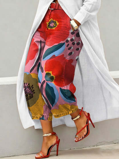 Women's Vintage Floral Print Casual Jeans – lolonb