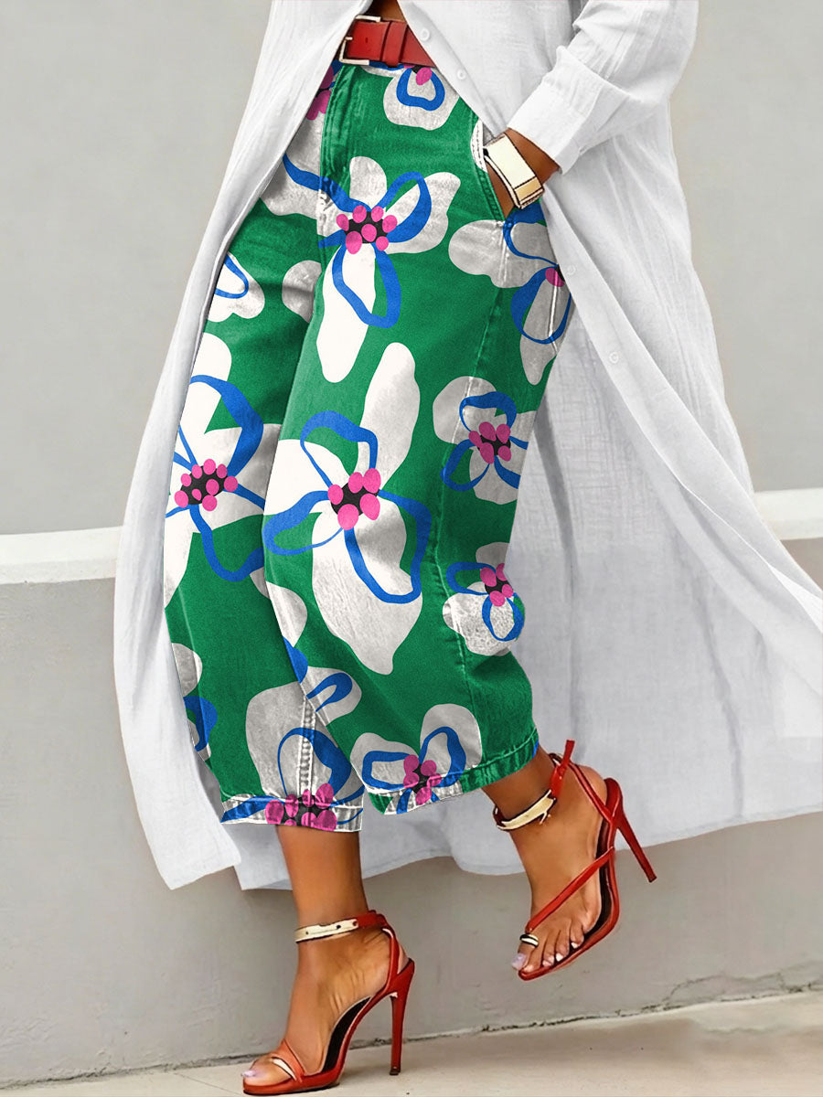 Women's Vintage Floral Print Casual Jeans – lolonb