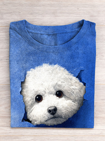 Cute Dog Art Print Casual Short Sleeve T-shirt