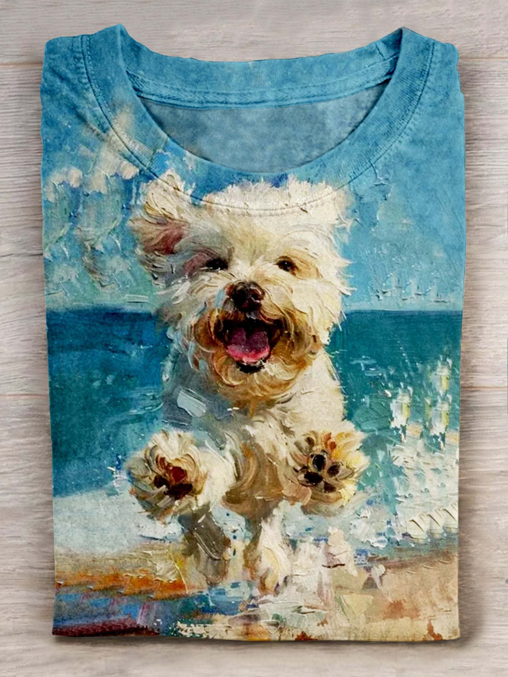Funny Dog Art Print Casual Short Sleeve T-shirt