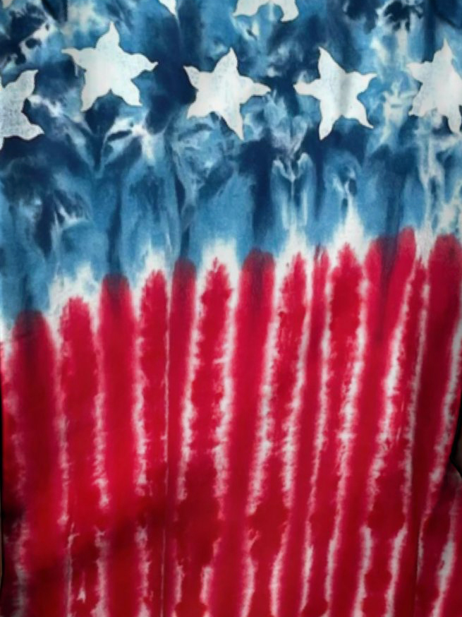 Women's Crew Neck Simple Tie-Dye Pattern America Flag Loose T-Shirt