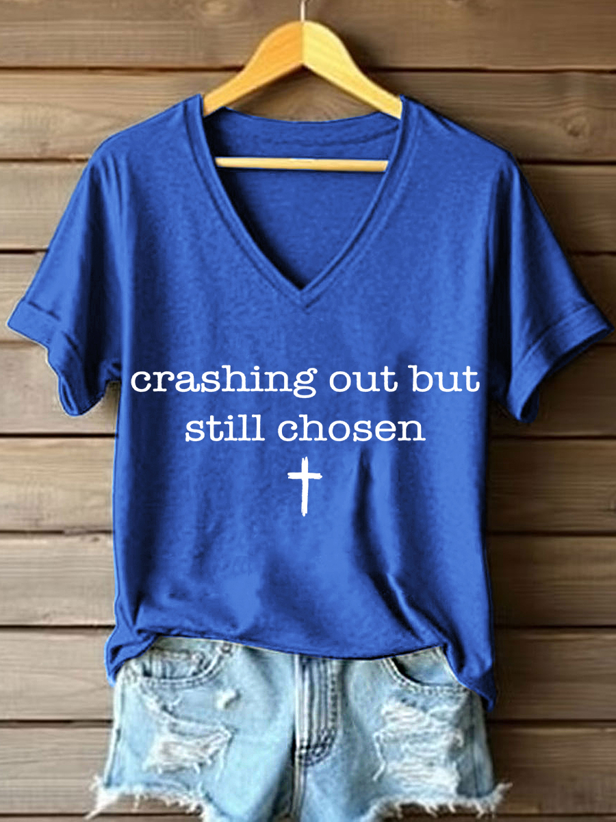 Women's Crashing Out But Still Chosen Print V-Neck T-Shirt