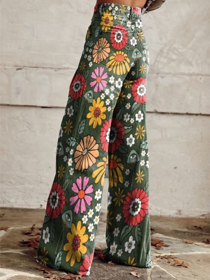 Women's Vintage Flower Daisy Print Casual Wide Leg Pants