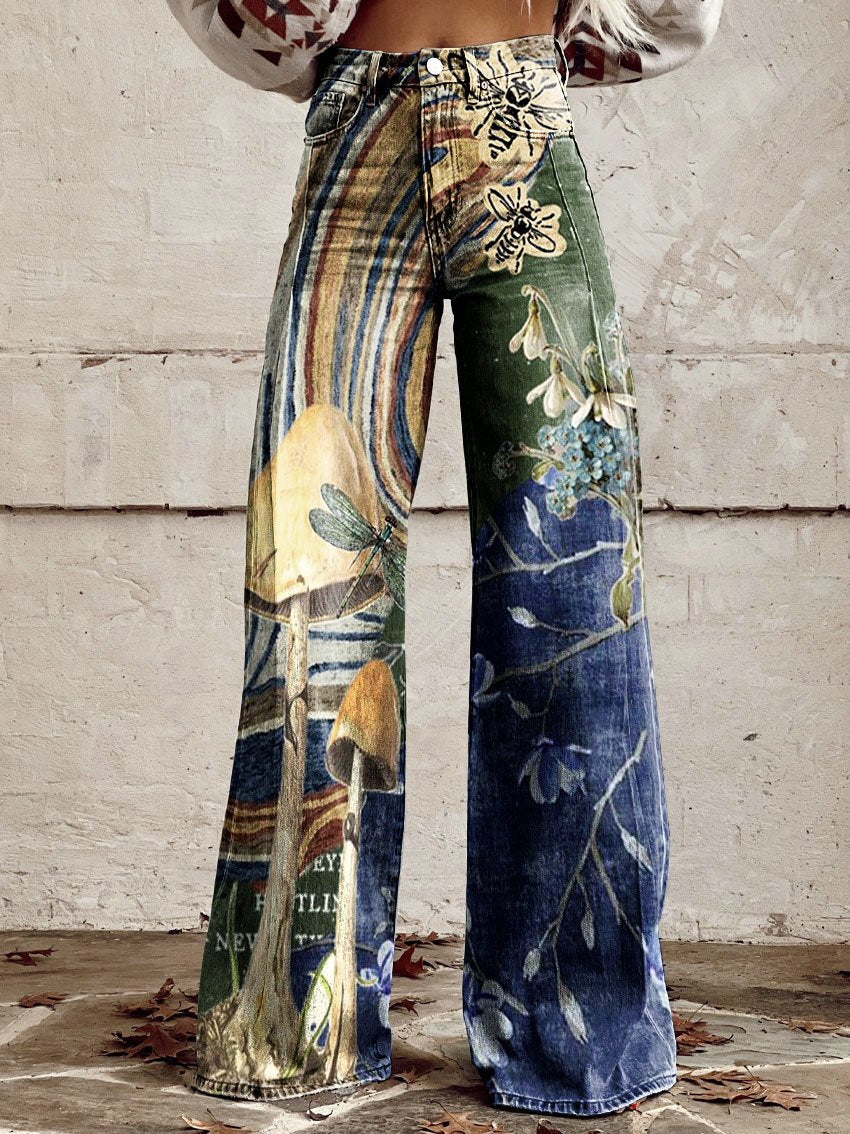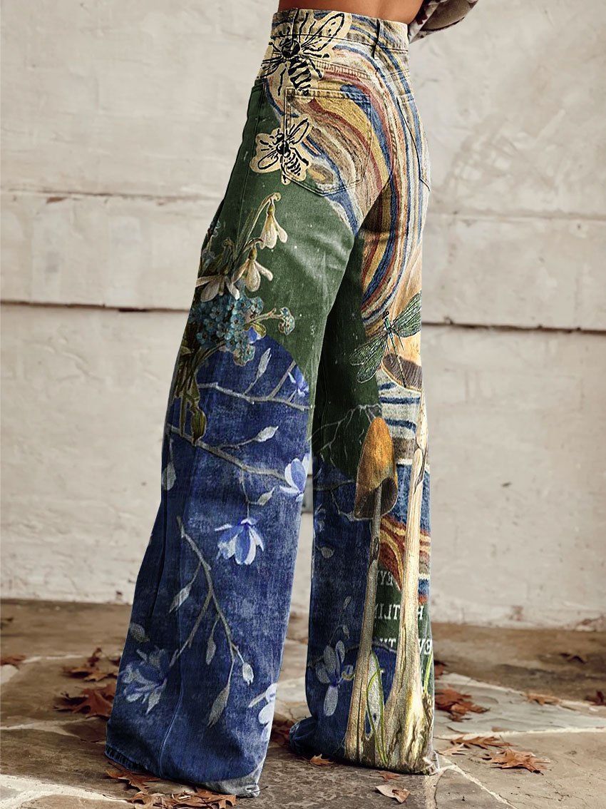 Women's Vintage Flowers Print Casual Wide Leg Pants