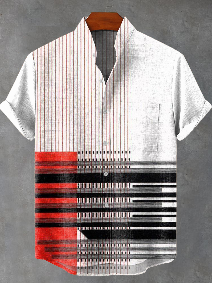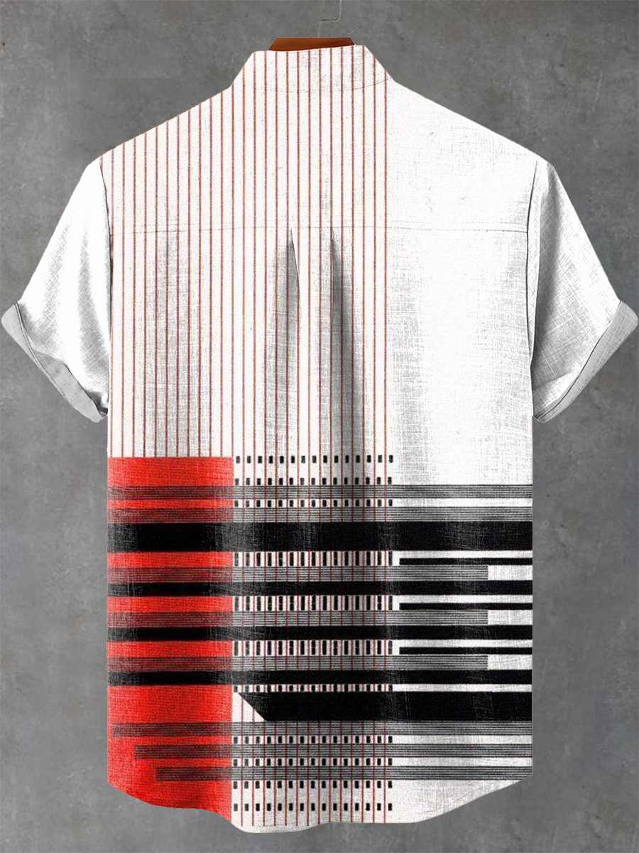 Retro Red Abstract Geometric Pattern Art Print Casual 100% Cotton Shirt