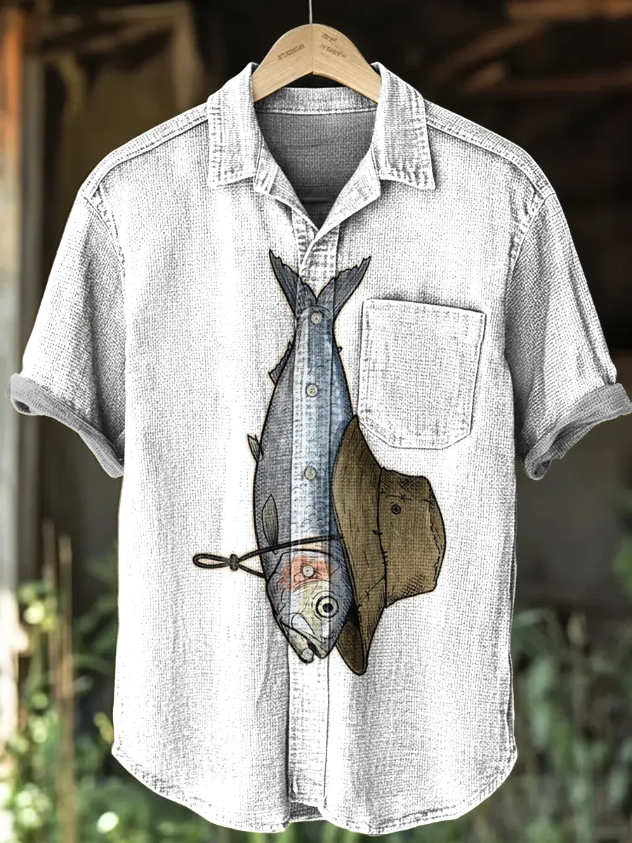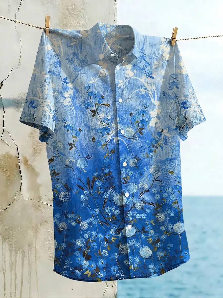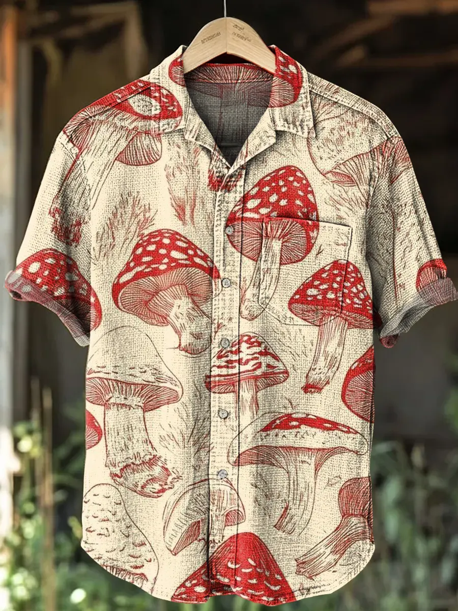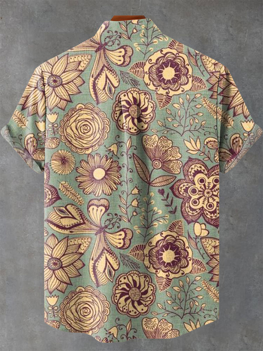 Men's Casual Short Sleeve Collared Cotton Linen Shirt