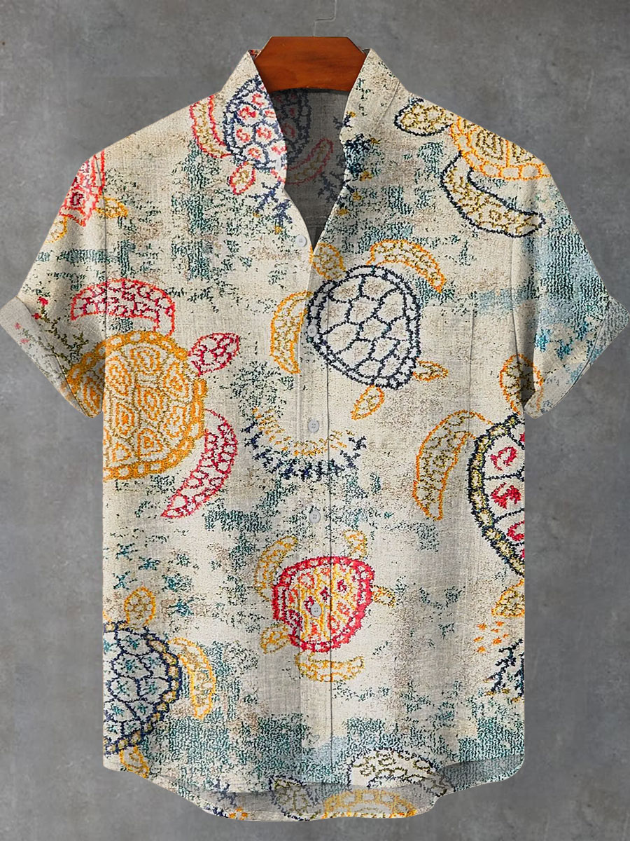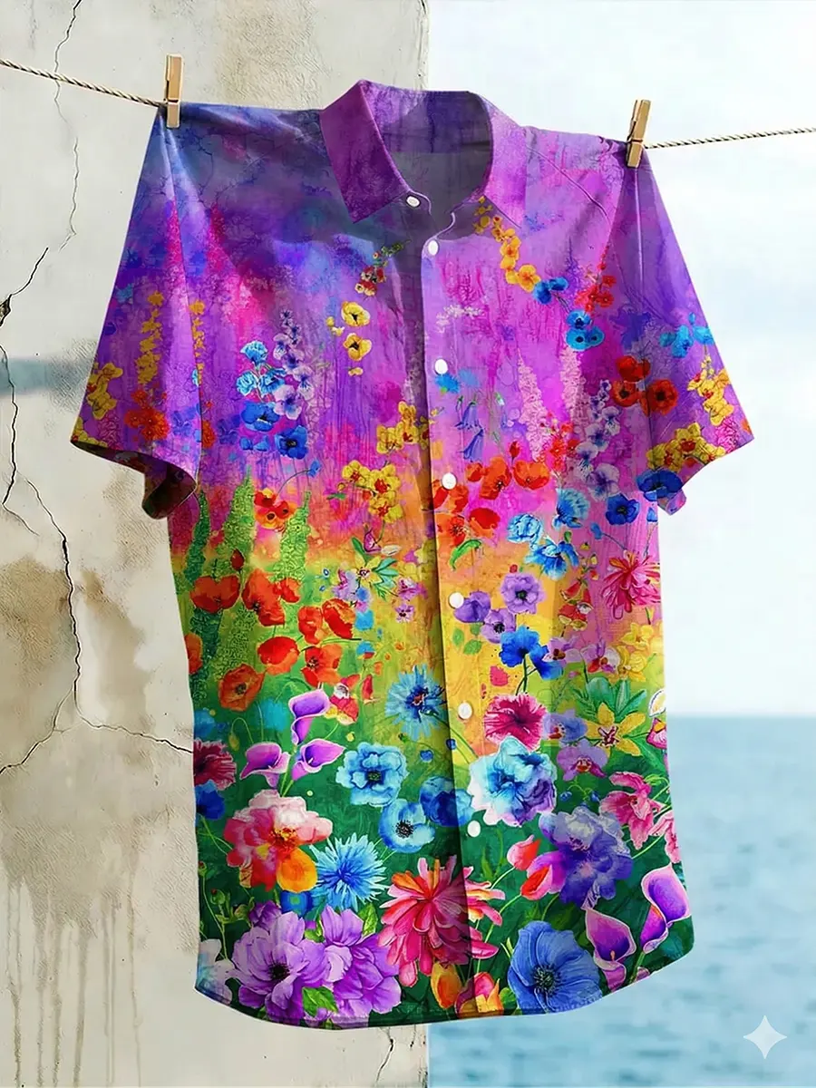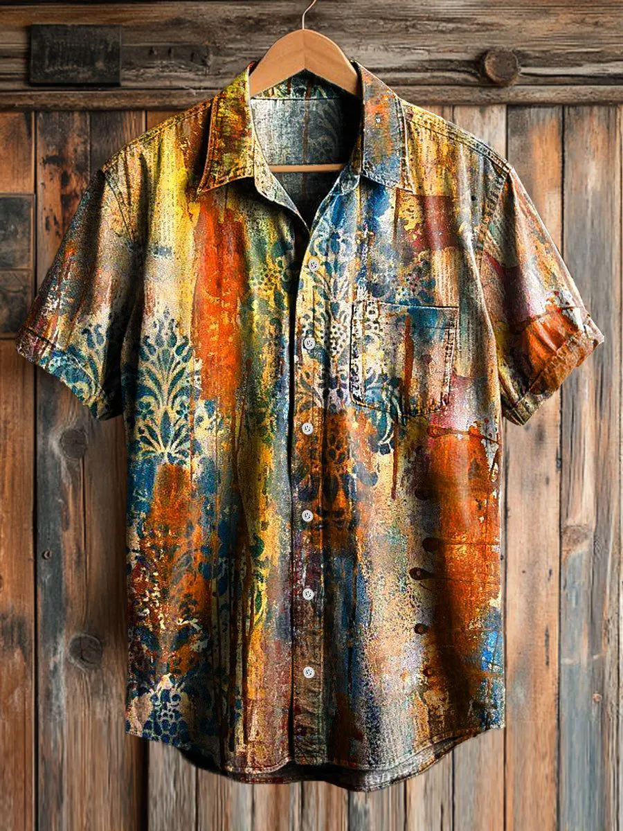 Abstract Colors Art Vintage Print Casual 100% Cotton Shirt