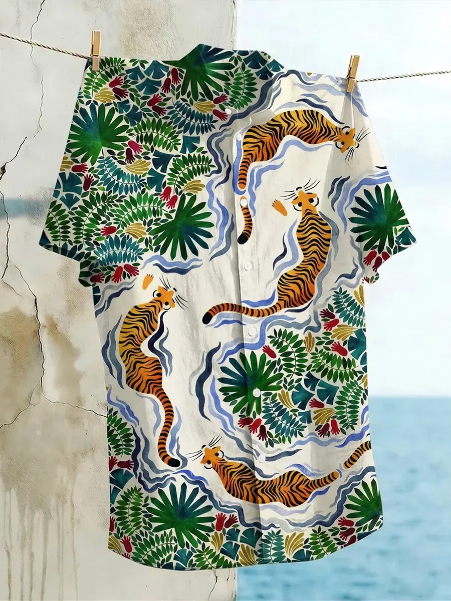 Casual Abstract Art Print Linen Shirt – lolonb