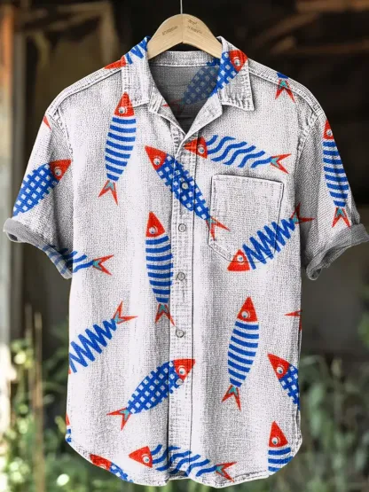 Casual Abstract Art Print Linen Shirt