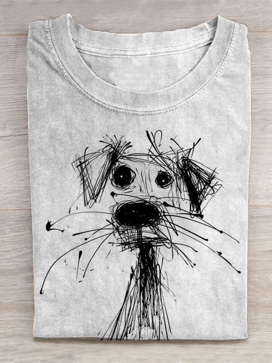 Funny Art Dog Print T-shirt
