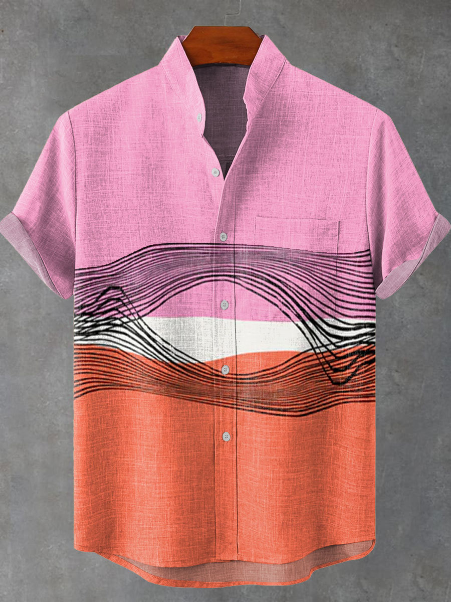 Pink Curve Geometry Abstract Art Vintage Print Casual 100% Cotton Shirt