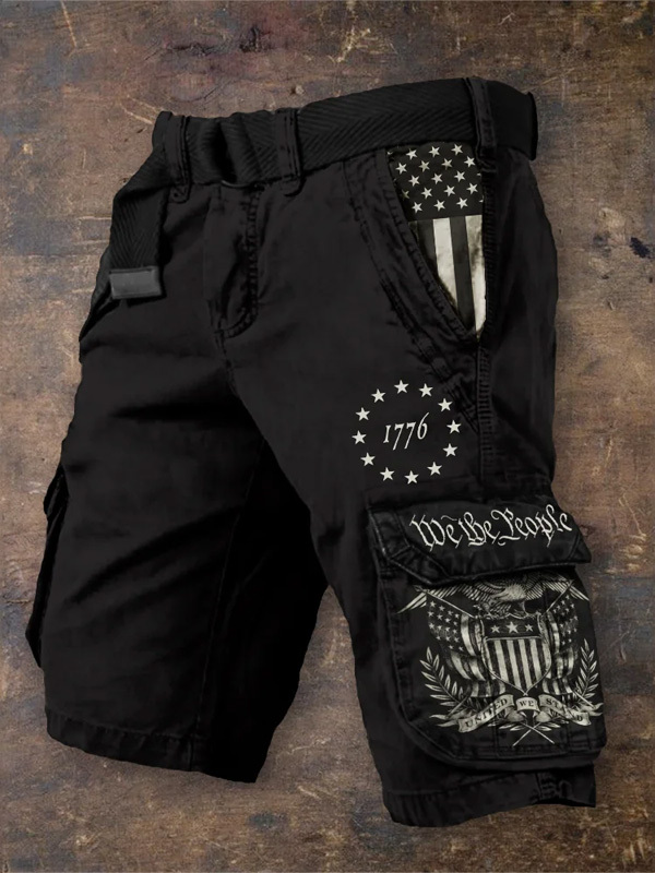 Men's 1776 Independence Day Vintage Flag Print Denim-Like Cargo Shorts