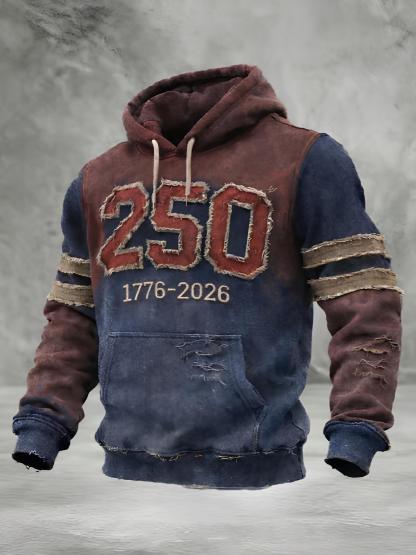 Men's 250 Slogan Independence Day Art Print Pocket Hoodie