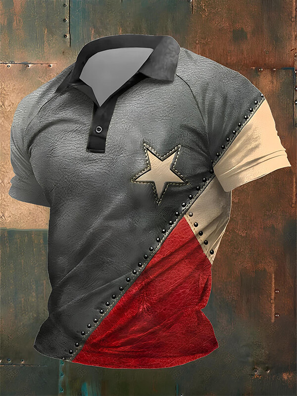 Men's Colorblock Star Rivet Graphic Print Short Sleeve Polo Shirt