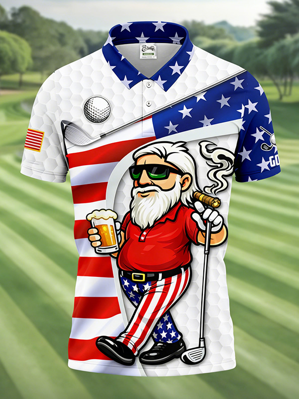 Men's Funny Uncle Sam Golf US Flag Pattern Honeycomb Art Print Short Sleeve Polo Shirt