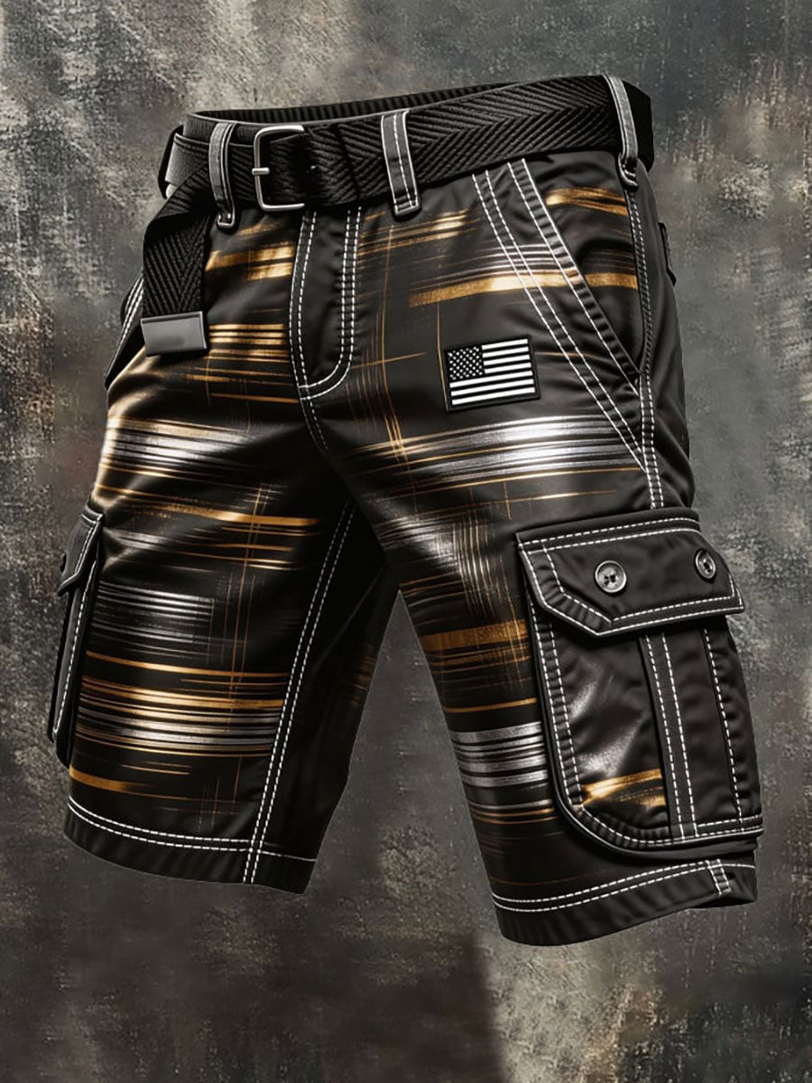 Men's Geometric Art Striped Print Denim-Like Cargo Shorts