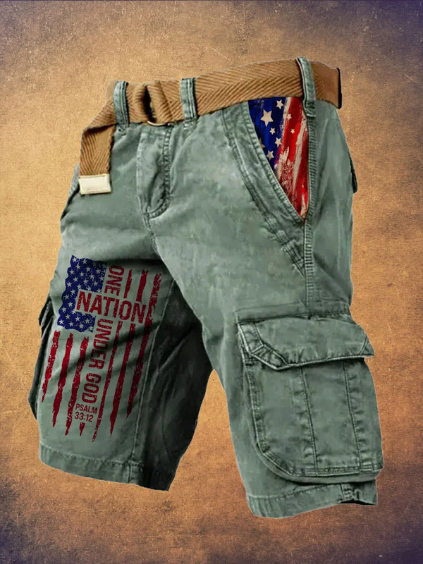 Men's Independence Day Retro Flag Nation Art Print Denim-Like Cargo Shorts