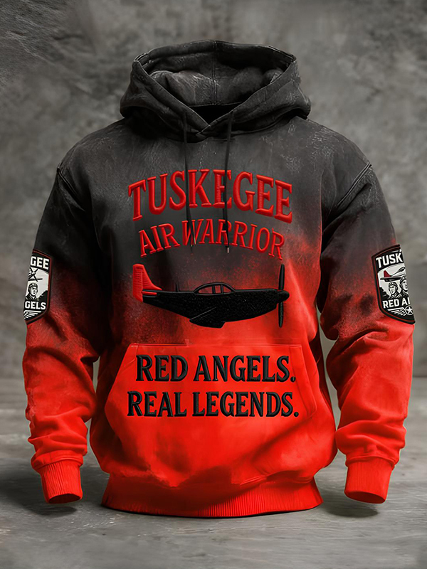 Men's Tuskegee Air Warrior Red Angels Real Legends Ombre Art Print Casual Hoodie