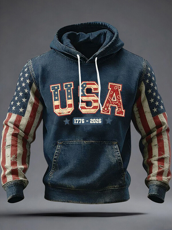 Men's USA 1776-2026 Stars and Stripes Print Casual Hoodie