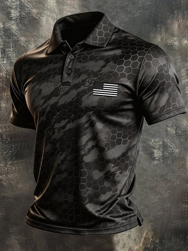 Men's USA Flag Camo Geometric Pattern Short Sleeve Polo Shirt