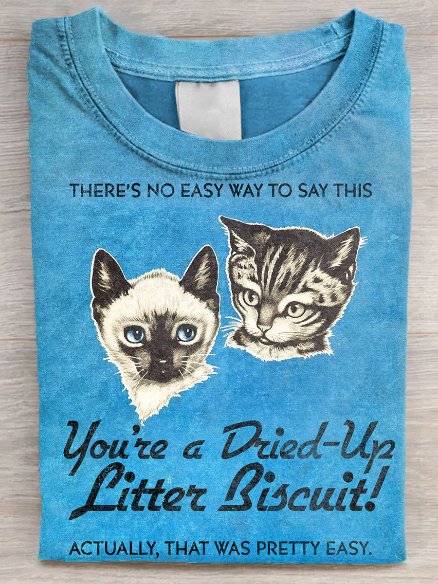 Vintage Funny Cat Art Print Casual Short Sleeve T-shirt
