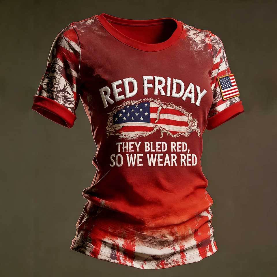 Women's Casual Red Friday Print Short-Sleeve T-Shirt