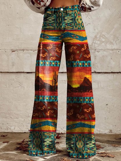 Women's Color Aztecs Casual Wide Leg Pants