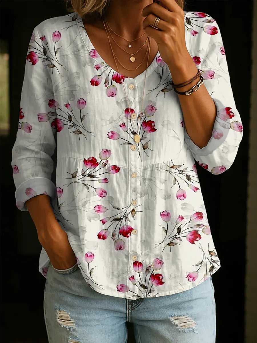 Women's Floral Pattern Art Print Casual Cotton Shirt – lolonb